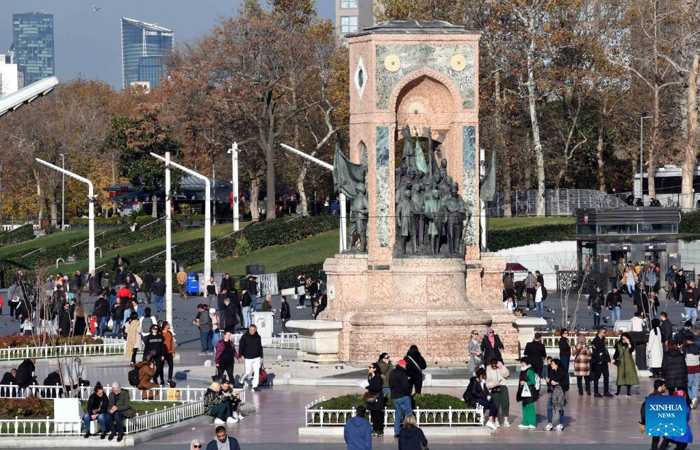 Tourists visit Taksim Square in Istanbul, Trkiye, Nov. 22, 2022. More than 4.8 million foreign visitor arrivals were registered in Trkiye in October, up by 38.3 percent year on year, official statistics showed on Monday. (Xinhua/Shadati)