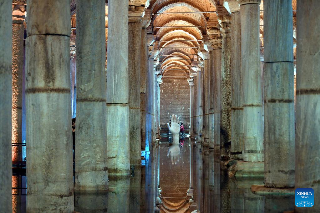 People visit the Basilica Cistern in Istanbul, Trkiye, Nov. 23, 2022. More than 4.8 million foreign visitor arrivals were registered in Trkiye in October, up by 38.3 percent year on year, official statistics showed on Monday. (Xinhua/Shadati)