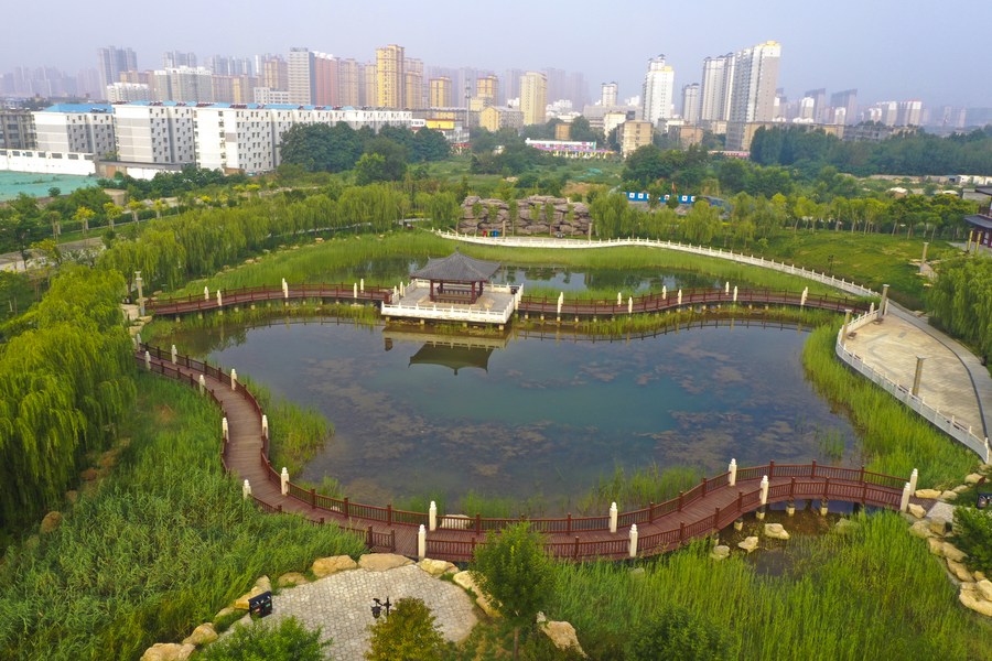 This aerial photo taken on July 22, 2020 shows a view of a cultural park in Hengshui City, north China's Hebei Province. (Xinhua/Li Xiaoguo)