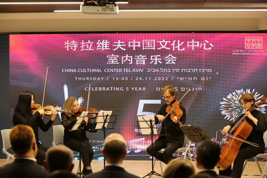 A concert is held at the China Cultural Center in Tel Aviv, Israel, on Nov. 24, 2022, to celebrate its fifth founding anniversary. (Xinhua/Wang Zhuolun)