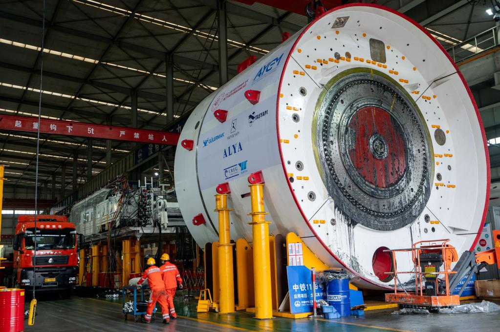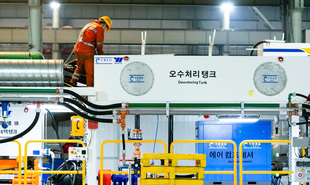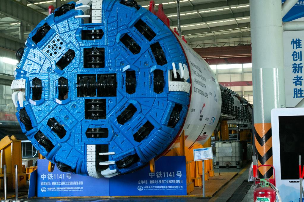 A tunnel boring machine is pictured before it is exported to South Korea at a workshop of China Railway Engineering Equipment Group Co., Ltd. (CREG) in Zhengzhou, central China's Henan Province, Nov. 24, 2022. (Xinhua)