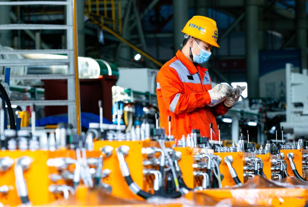 An employee works at a workshop of China Railway Engineering Equipment Group Co., Ltd. (CREG) in Zhengzhou, central China's Henan Province, Nov. 24, 2022. (Xinhua)