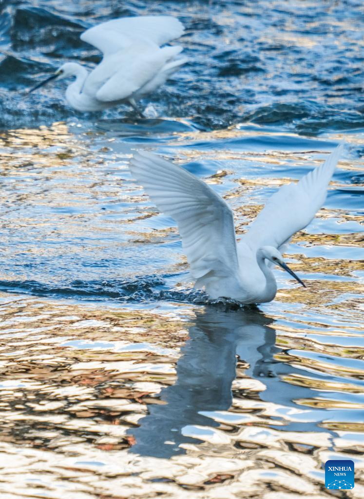 Egrets are seen at a wetland in Qixingguan District of Bijie, southwest China's Guizhou Province, Nov. 27, 2022. (Photo by Luo Dafu/Xinhua)