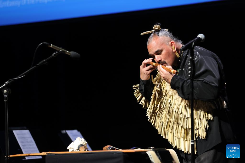 An artist performs during a concert to celebrate the 50th anniversary of the establishment of diplomatic relations between China and New Zealand at the national museum of New Zealand in Wellington, New Zealand, Nov. 28, 2022. (Photo by Meng Tao/Xinhua)