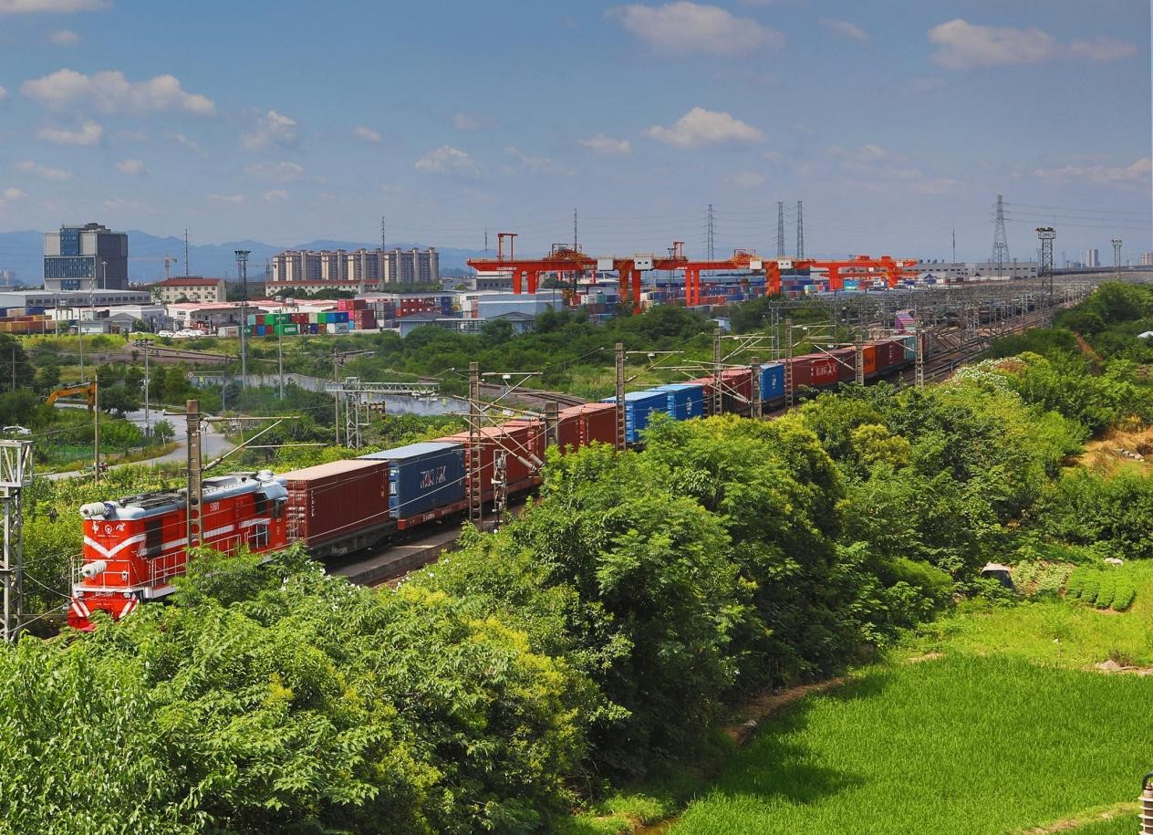 A freight train carrying photovoltaic (PV) parts for a PV project in central Myanmar carried out by the Power Construction Corporation of China departs from Yiwu, east China's Zhejiang province, July 7, 2022. (Photo by Gong Xianming/People's Daily Online)