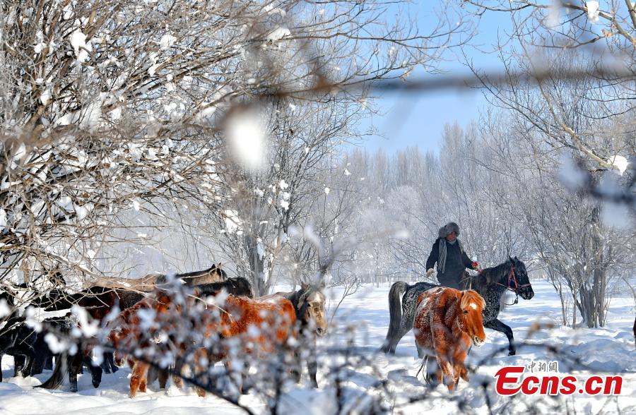 A herd of horses gallop on snow-covered prairie in Zhaosu county, known as "hometown of pegasus", Kazak Autonomous Prefecture of Ili, northwest China's Xinjiang Uygur Autonomous Region, Nov. 27, 2022. (Photo: China News Service/Li Wenwu)