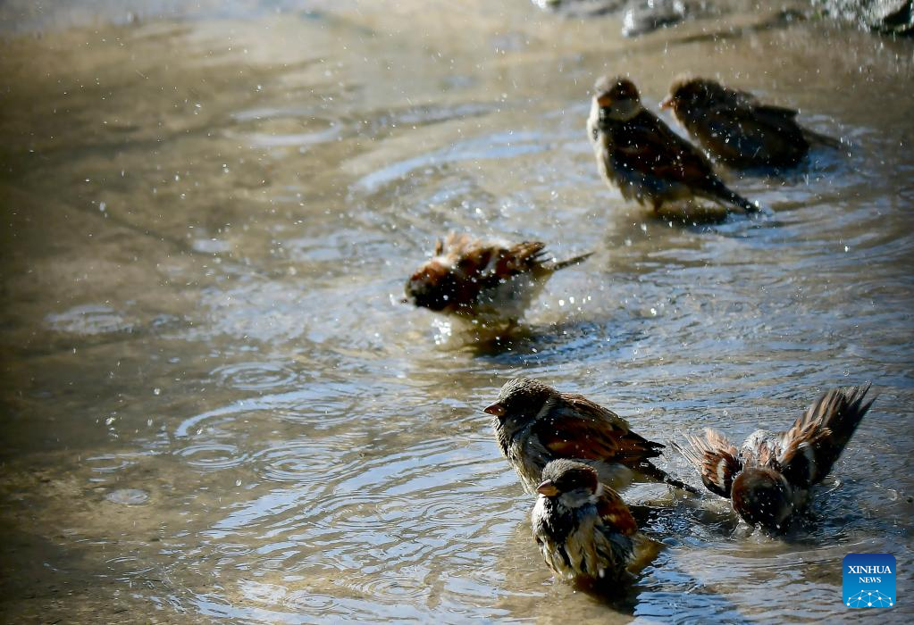 Birds drink water at a lake in Damascus, capital of Syria, Nov. 30, 2022. (Photo by Ammar Safarjalani/Xinhua)