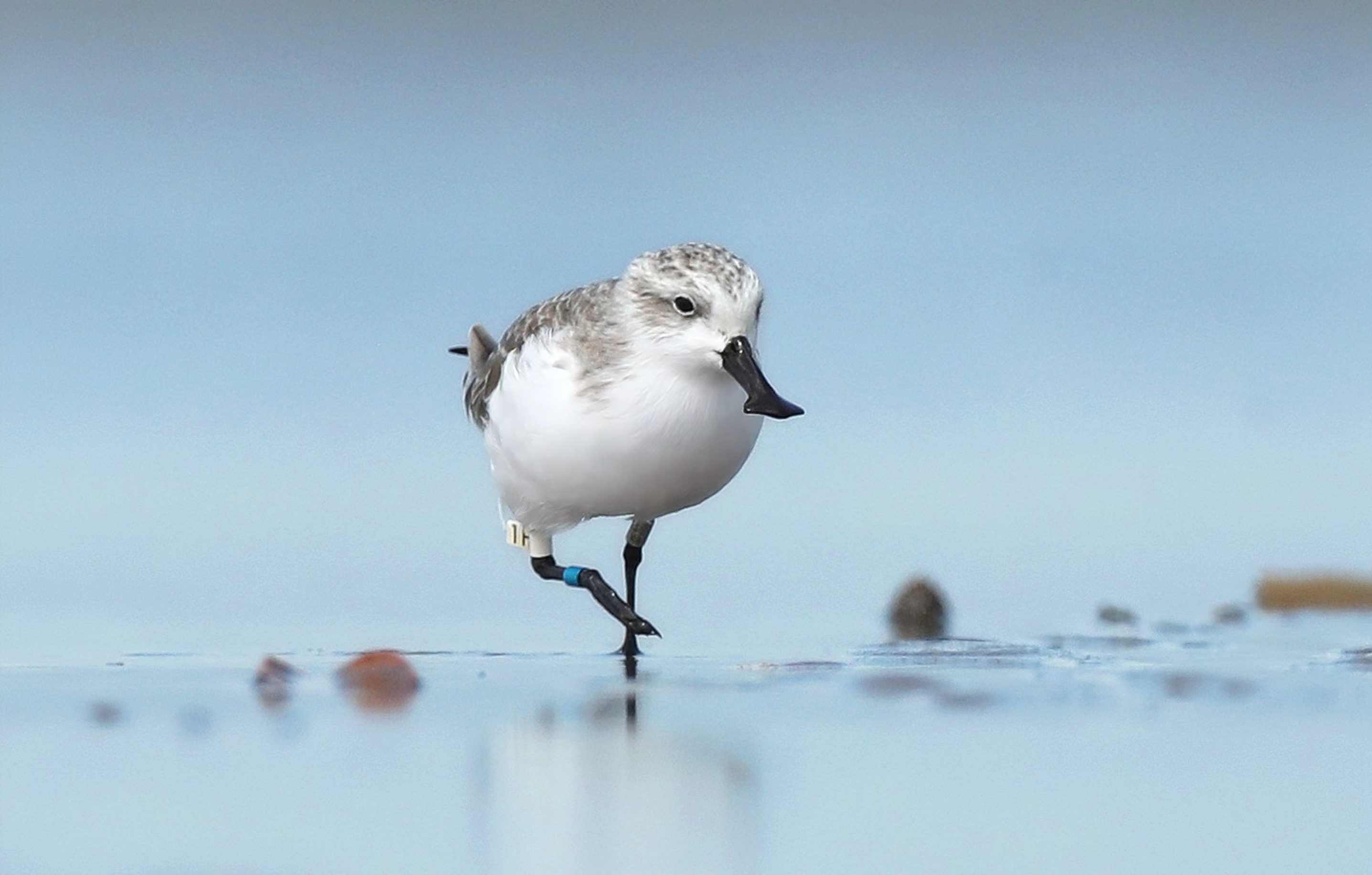 A spoon-billed sandpiper, a species under first-class state protection in China, forages on Santouzui beach, Xitou township, Yangxi county, Yangjiang city, south China’s Guangdong Province. (Photo/Chen Jie)