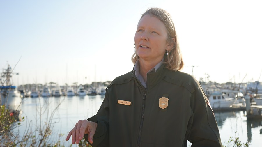 Annie Little, supervisory natural resource manager at Channel Islands National Park, is seen during an interview in Ventura, California, the United States, on Nov. 29, 2022. (Photo by Zeng Hui/Xinhua)