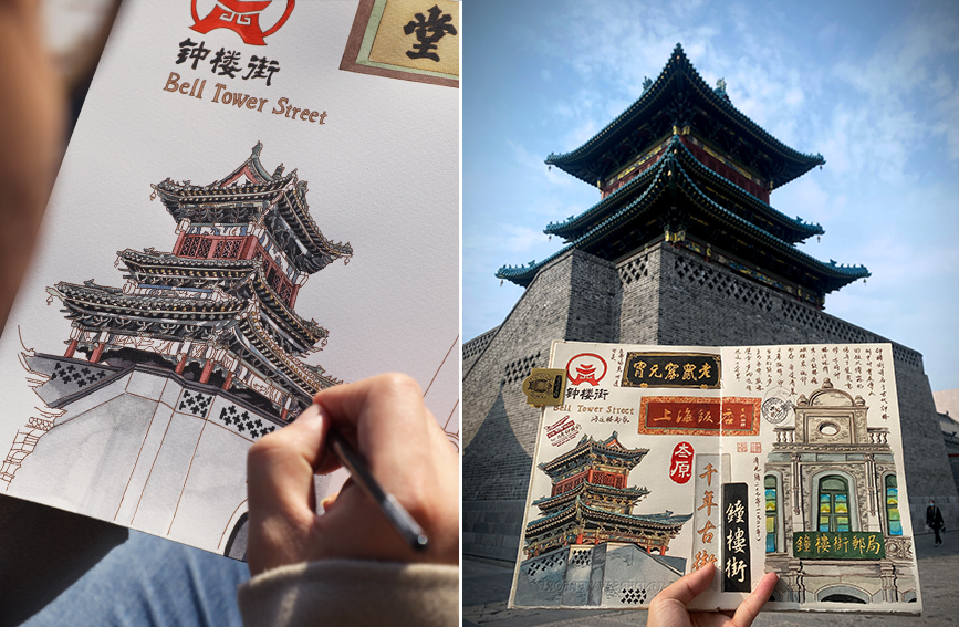 With a brush, a palette and a sketchbook, Bai decided to record these familiar ancient buildings through illustrations, bringing them to more people.