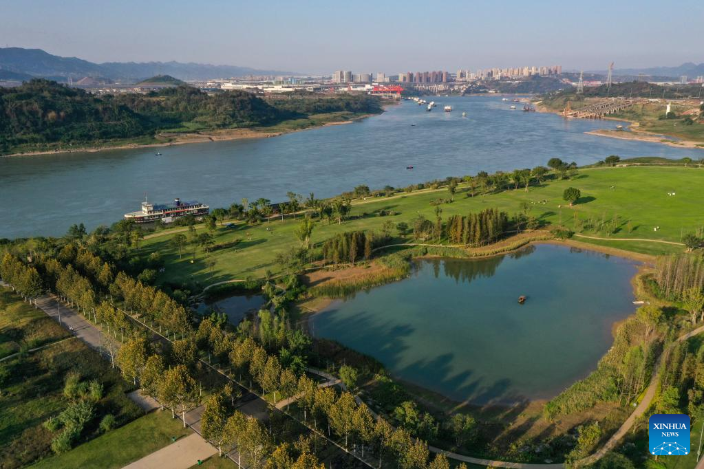 This aerial photo taken on Nov. 2, 2022 shows a view of Guangyang Isle in southwest China's Chongqing. (Xinhua/Wang Quanchao)