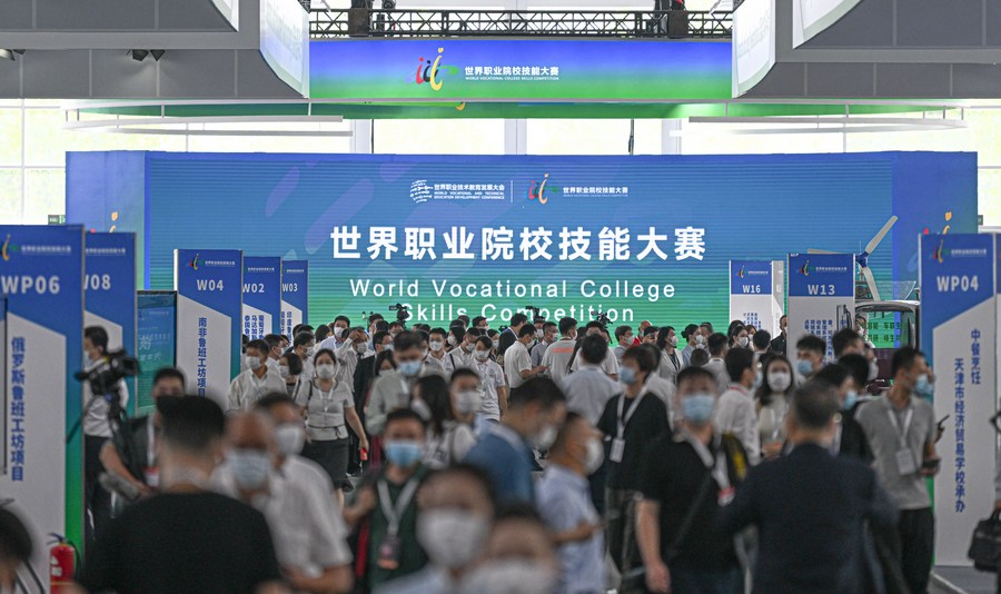 The World Vocational College Skills Competition is held at the national convention and exhibition center in Tianjin, north China, Aug. 19, 2022. (Xinhua/Sun Fanyue)