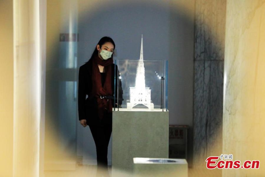A visitor views exhibits during the world's first immersive exhibition on Notre-Dame de Paris, marking its Asian debut in Shanghai, Dec. 5, 2022. (Photo: China News Service/Tang Yanjun)
