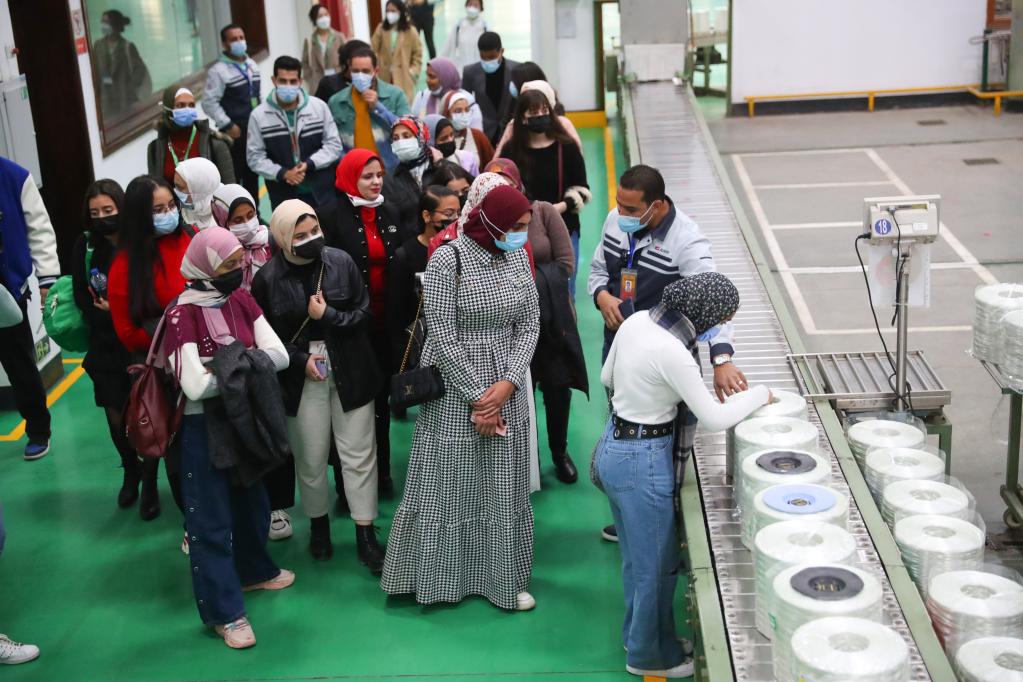 Egyptian students visit the factory of China's fiberglass manufacturer Jushi Egypt, located in China-Egypt TEDA Suez Economic and Trade Cooperation Zone, Egypt, on Dec. 30, 2021. (Xinhua/Sui Xiankai)