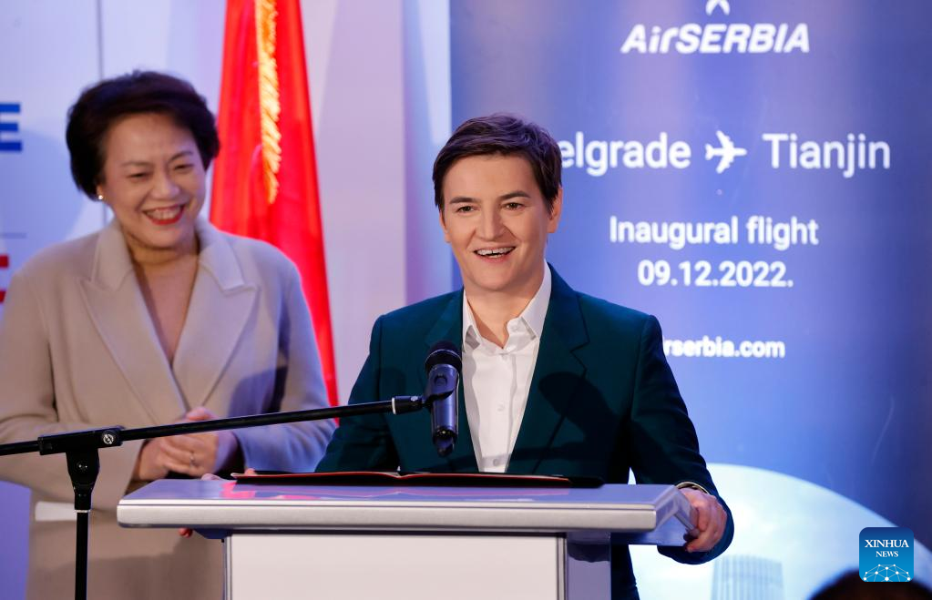 BELGRADE, Dec. 9 (Xinhua) -- The first direct flight between Serbia's Belgrade and north China's Tianjin city was launched on Friday, operated by Serbia's national carrier Air Serbia.