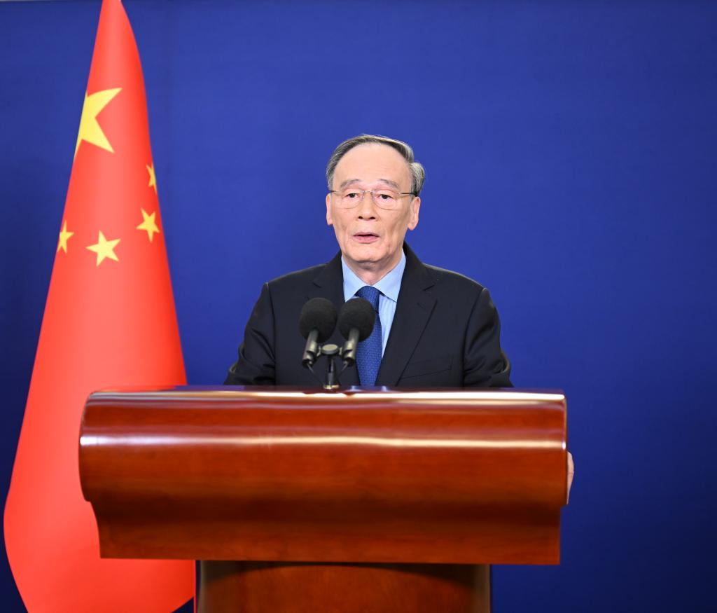 Chinese Vice President Wang Qishan speaks during a video address at the opening ceremony of the fourth Bund Summit, Dec. 10, 2022. (Xinhua/Zhang Ling)