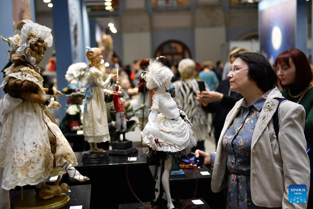 This photo taken on Dec. 10, 2022 shows the venue of a doll exhibition in Moscow, Russia. (Photo by Alexander Zemlianichenko Jr/Xinhua)