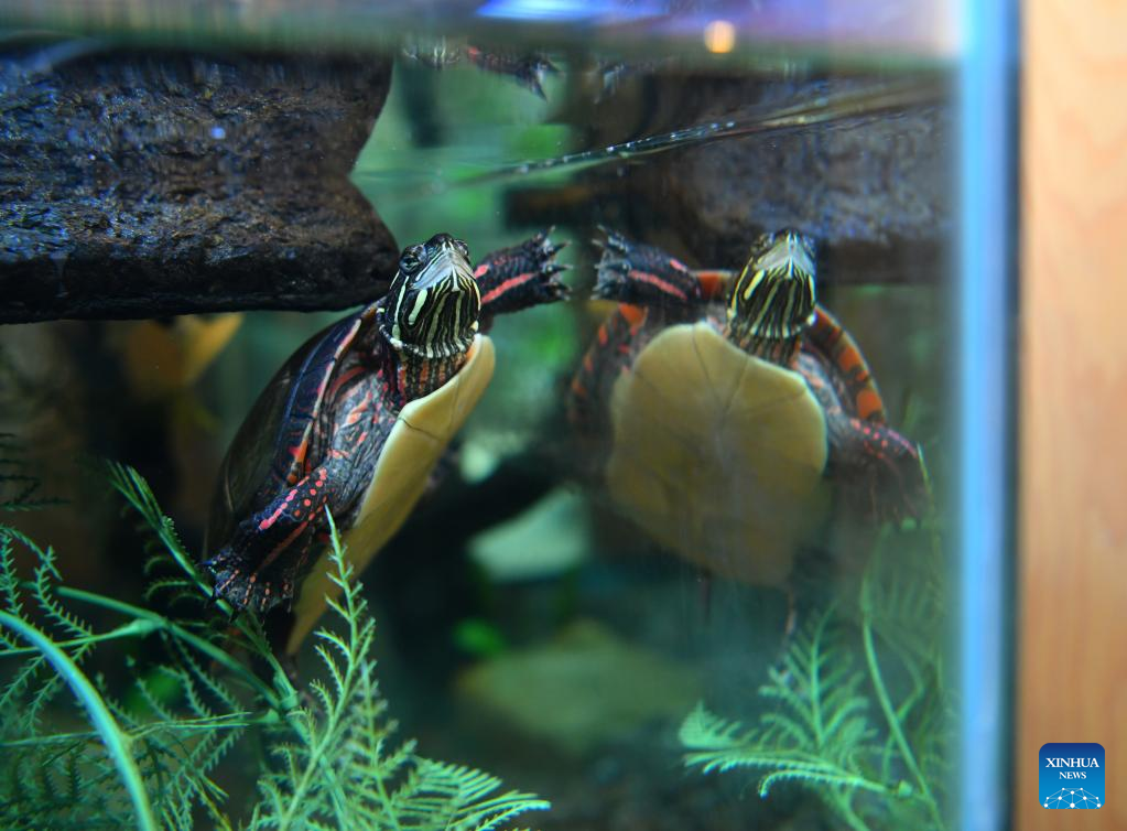 A turtle is seen at Quebec's Biodiversity Museum in Becancour, Canada, Dec. 11, 2022. Founded in 1997, Quebec's Biodiversity Museum is situated in Becancour, 150 km from Montreal, Canada.