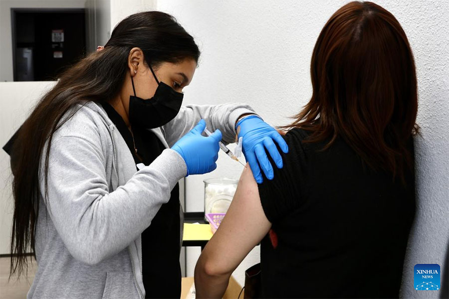 A medical worker administers a dose of flu vaccine to a recipient at a medical center in Rosemead, California, the United States, on Dec. 10, 2022. (Xinhua)