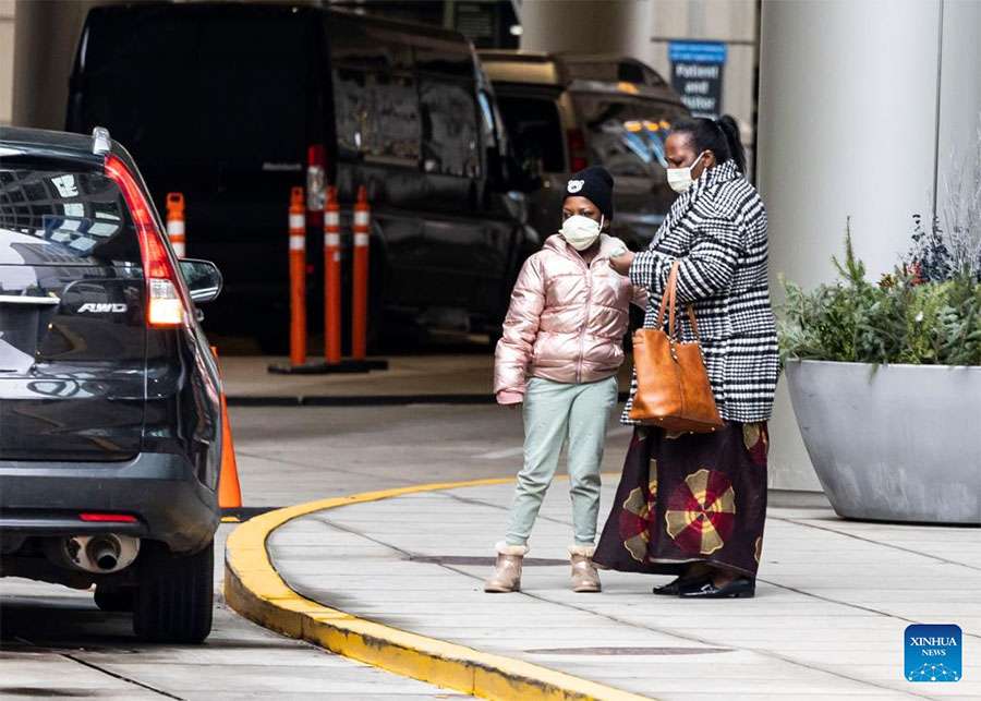 People wait for their ride outside Ann and Robert H. Lurie Children's Hospital of Chicago in Chicago, the United States, on Dec. 12, 2022. (Photo by Joel Lerner/Xinhua)