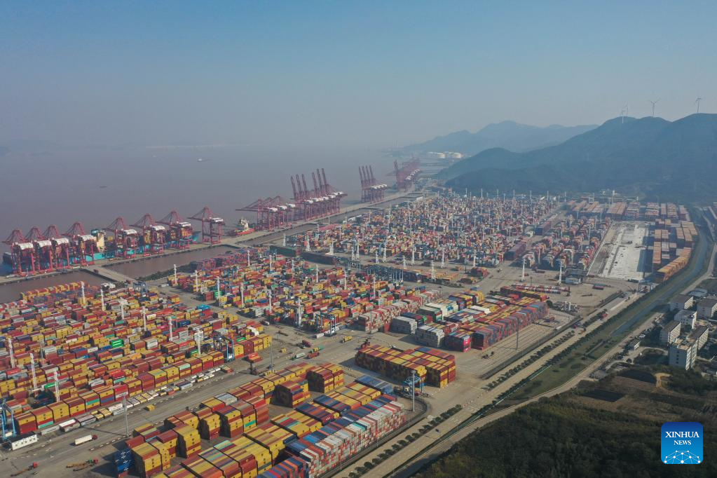 This aerial photo taken on Dec. 13, 2022 shows the Chuanshan area of Ningbo-Zhoushan Port in east China's Zhejiang Province. (Xinhua/Huang Zongzhi)