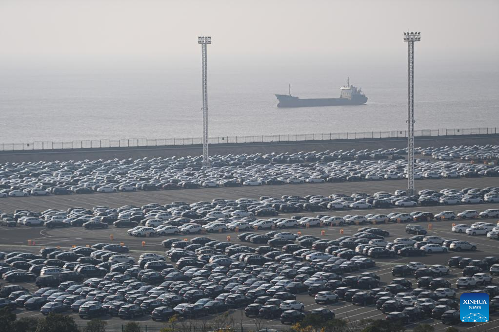 This photo taken on Dec. 13, 2022 shows vehicles at Meidong Dock of the Ningbo-Zhoushan Port in east China's Zhejiang Province. (Xinhua/Huang Zongzhi)