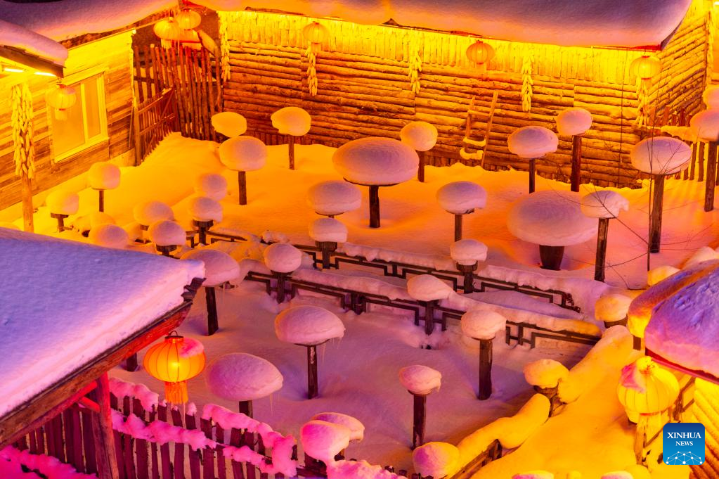 This photo taken on Dec. 14, 2022 shows a view of the Snow Town scenic spot in Hailin City in northeast China's Heilongjiang Province. The Snow Town scenic spot officially opened recently. Enjoying a seven-month snow season, it has become an attraction for tourists for years. (Xinhua/Xie Jianfei)