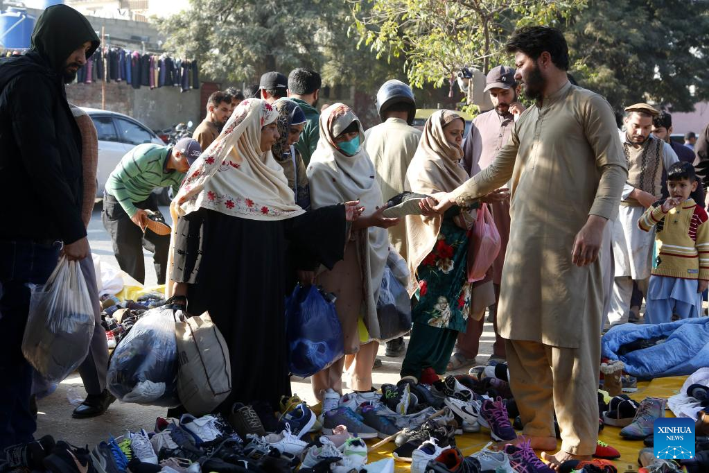 ISLAMABAD, Dec. 18 (Xinhua) -- As the winter chills envelop Pakistan with mercury level continuing to drop, thrifty shoppers in the country crowded flea markets for economical and trendy shopping to keep themselves warm while enjoying the bundles of joy the season brings along.
