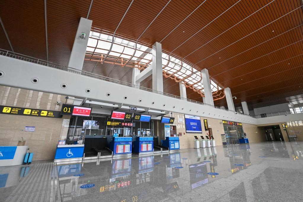 This photo taken on Dec. 19, 2022 shows the terminal interior of a new super-high plateau airport at Taxkorgan Tajik Autonomous County, northwest China's Xinjiang Uygur Autonomous Region. (Xinhua/Ding Lei)
