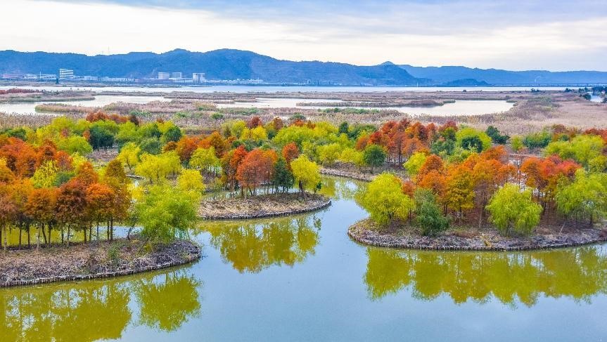 Photo taken on Feb. 20, 2022 shows a picturesque view in a wetland park in Yuhuan, east China's Zhejiang province. (People's Daily Online/Wu Xiaohong)