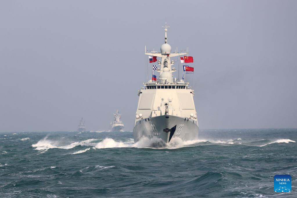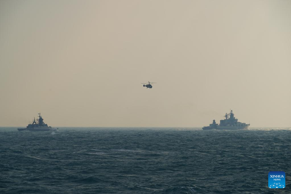 Warships of Russian navy take part in a joint naval exercise, Joint Sea 2022, in the East China Sea on Dec. 21, 2022. (Xinhua/Li Bingxuan)