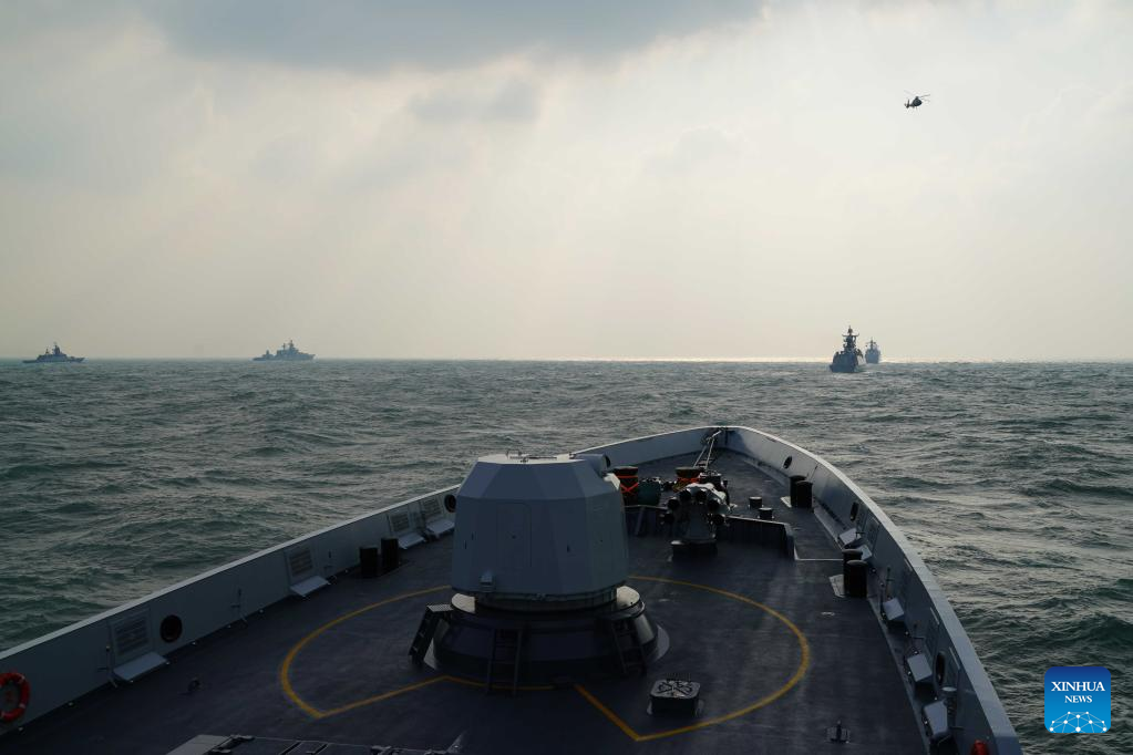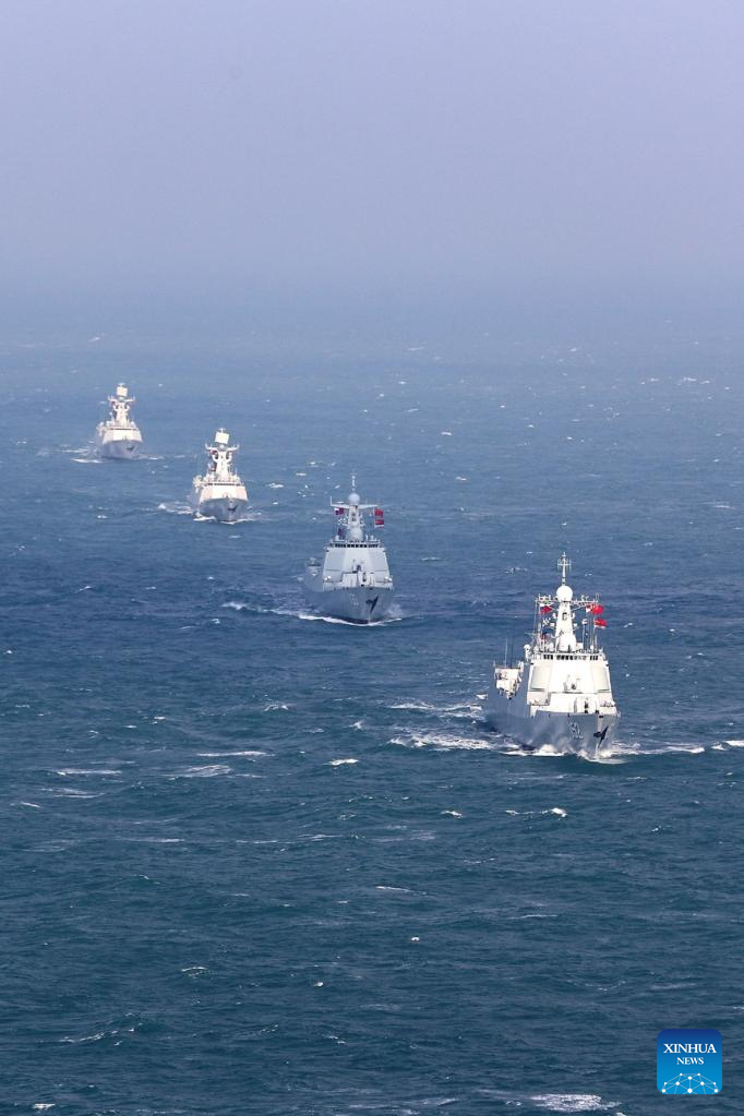 Warships of Chinese navy take part in a joint naval exercise, Joint Sea 2022, in the East China Sea on Dec. 21, 2022. (Photo by Xu Wei/Xinhua)