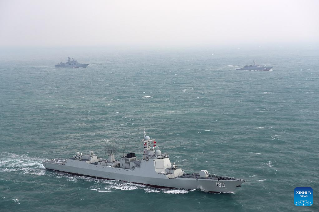 Warships of Chinese navy take part in a joint naval exercise, Joint Sea 2022, in the East China Sea on Dec. 21, 2022. (Xinhua/Li Yun)