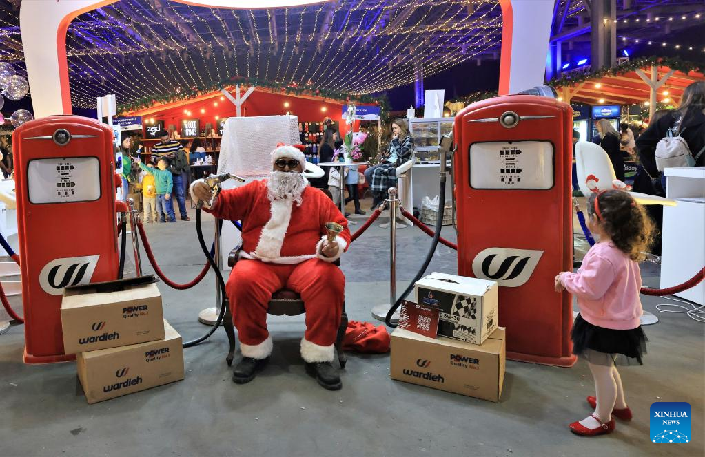 A man dressed in Santa Claus costume is seen at a Christmas market in Beirut, Lebanon, on Dec. 23, 2022. (Xinhua/Liu Zongya)