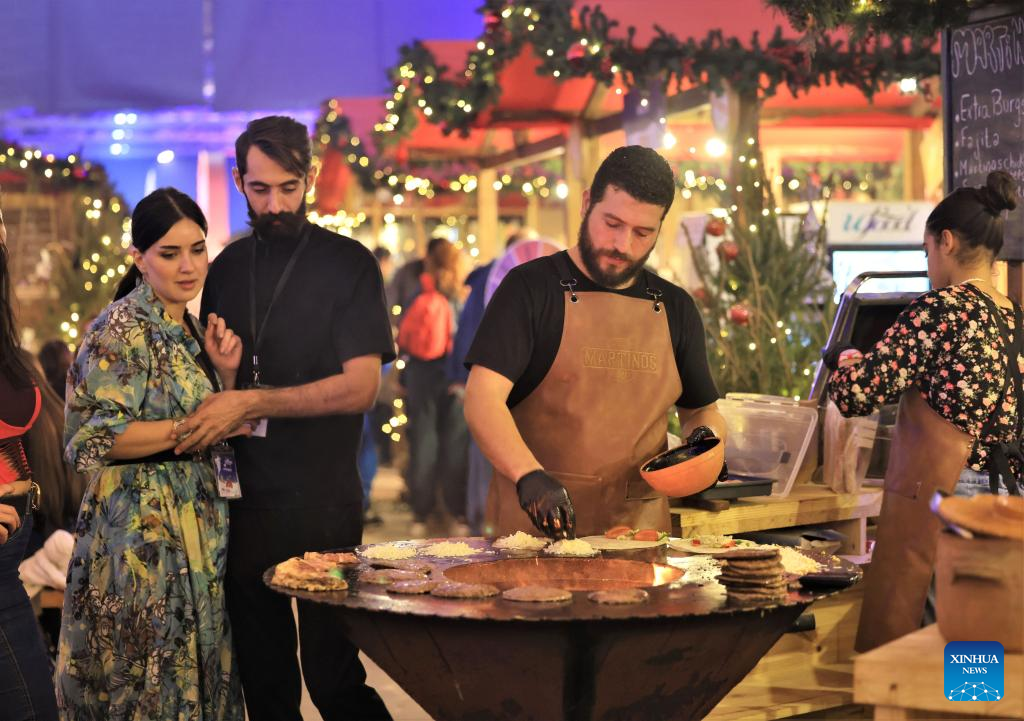 A man prepares food at a Christmas market in Beirut, Lebanon, on Dec. 23, 2022. (Xinhua/Liu Zongya)