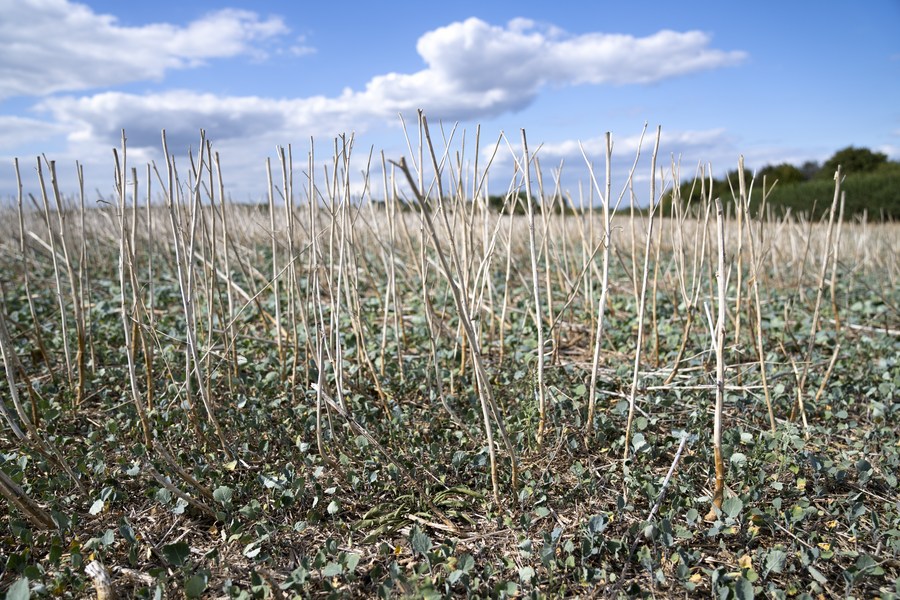 Photo taken on Aug. 31, 2022 shows a drought-affected farm field in Staffordshire, Britain. (Photo by Jon Super/Xinhua)
