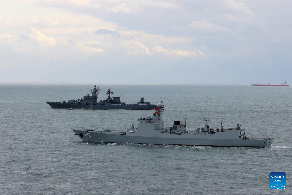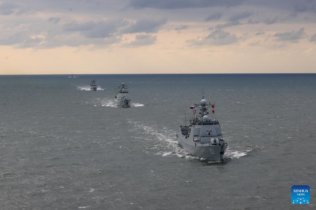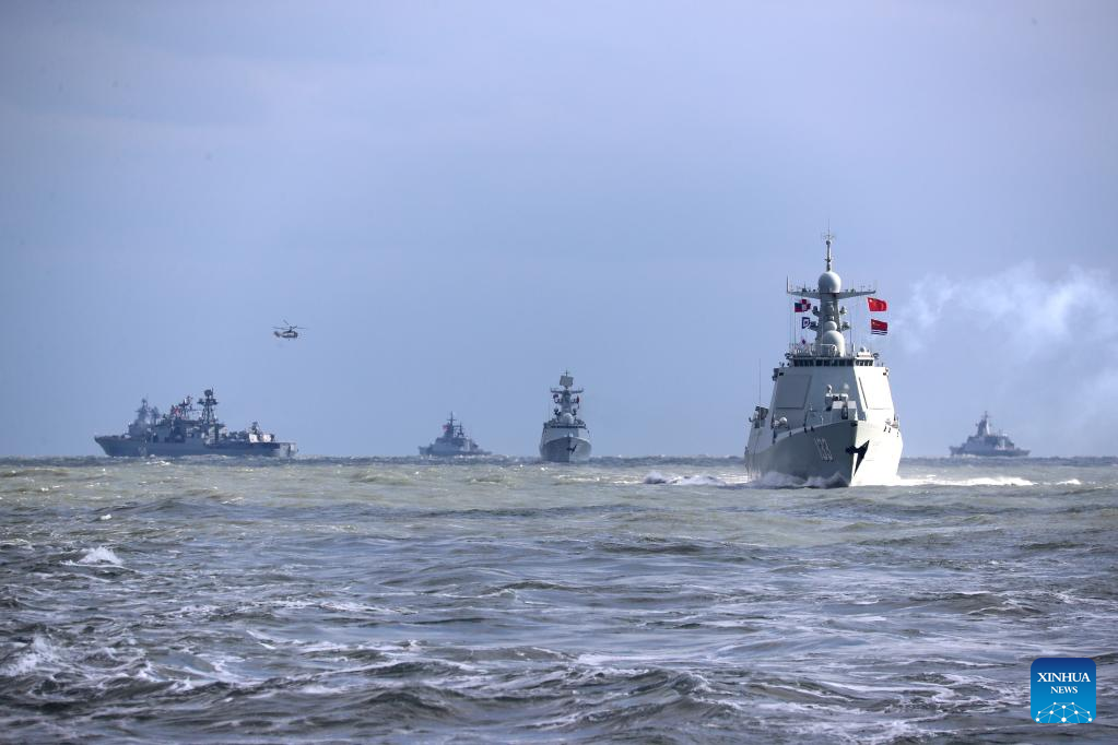 Warships from Chinese and Russian navies are pictured after a joint naval exercise, Joint Sea 2022, in the East China Sea on Dec. 27, 2022. (Xinhua/Li Yun)