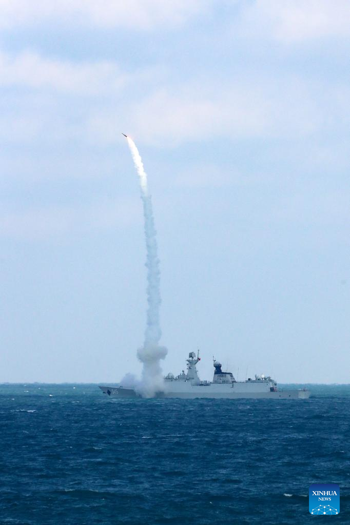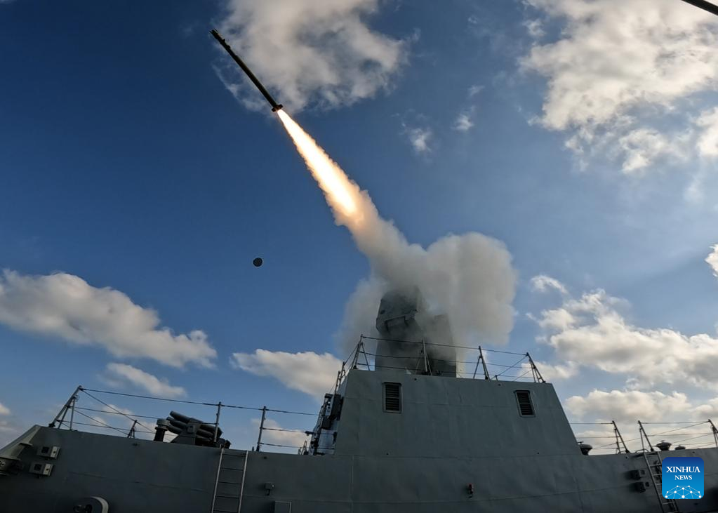 Chinese naval frigate Binzhou takes part in a joint naval exercise, Joint Sea 2022, in the East China Sea on Dec. 26, 2022. (Photo by Xu Wei/Xinhua)
