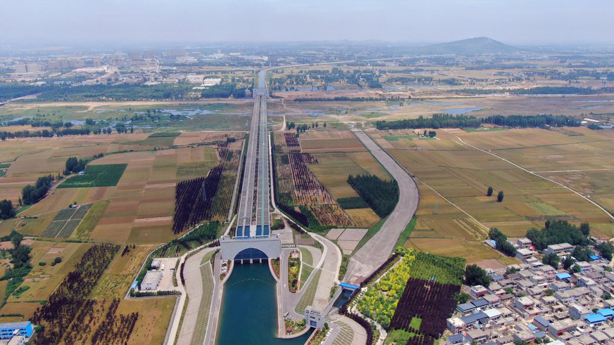 Aerial photo taken on May 22, 2021 shows the Shahe aqueduct, key project of the middle route of China's South-to-North Water Diversion Project.(Xinhua/Liu Shiping)
