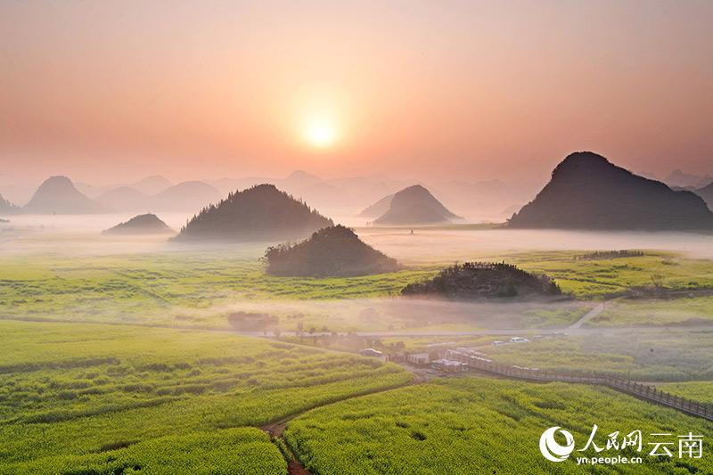 A scenic area in Luoping county, Qujing city, southwest China’s Yunnan Province, looks like a wonderful fairyland, March 7, 2022. (Photo/Mao Hong)