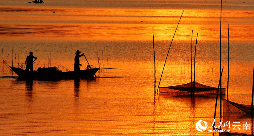 Fisherman return with a full load on Yilong Lake in Shiping county, Honghe Hani and Yi Autonomous Prefecture, southwest China’s Yunnan Province, August 2022. (Photo/Kong Bin)