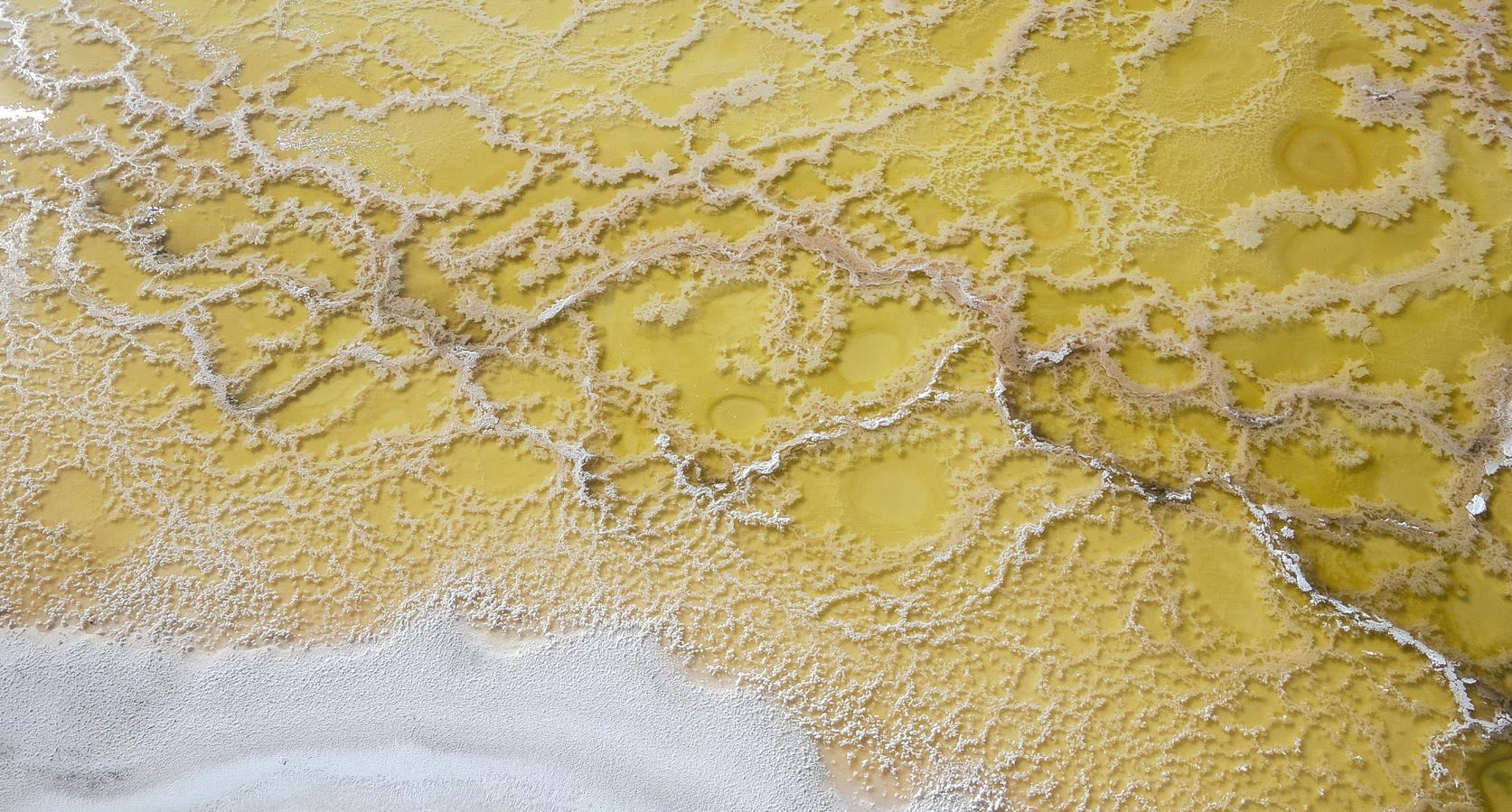 “Crystal flowers”, crystallized from sodium sulfate and magnesium sulfate in cold weather, appear on the surface of a salt lake in Yuncheng, north China’s Shanxi Province. (Photo/People’s Daily Online)