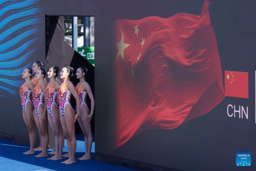 File photo taken on June 24, 2022 shows team China perform during the Artistic Swimming Women's Team Free Final of the 19th FINA World Championships in Budapest, Hungary. (Xinhua/Meng Dingbo)