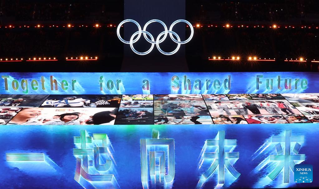 File photo taken on Feb. 4, 2022 shows the river of images during the opening ceremony of the Beijing 2022 Olympic Winter Games at the National Stadium in Beijing, capital of China. (Xinhua/Yang Lei)