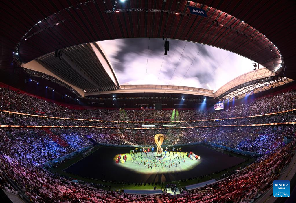 File photo taken on Nov. 20, 2022 shows the general view of the opening ceremony of the 2022 Qatar FIFA World Cup at Al Bayt Stadium in Al Khor, Qatar. (Xinhua/Xiao Yijiu)