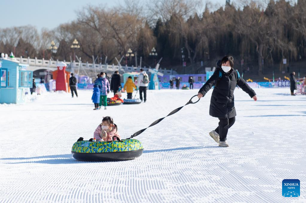 Visitors play on snow slides at an ice and snow carnival at Taoranting park in Beijing, capital of China, Dec. 28, 2022. (Xinhua/Chen Zhonghao)