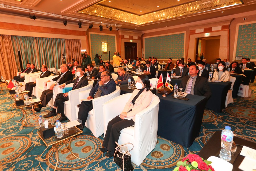 Guests attend a symposium on Sino-Arab relations and ways to enhance them in the future, in Cairo, Egypt, Dec. 28, 2022. (Xinhua/Sui Xiankai)