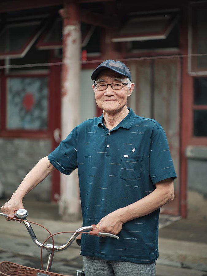 Zhu Maojin, a 75-year-old man, poses for a photo in his courtyard in the Caochang Sitiao Hutong in Caochang community, Qianmen Street, Dongcheng District of Beijing, July 1, 2022. (People’s Daily Online/Ma Tianyi)