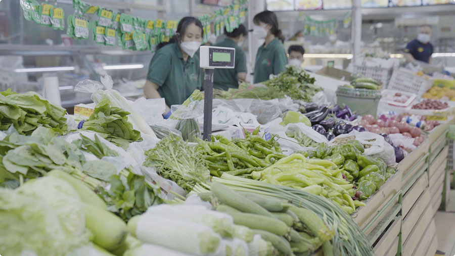A fresh food supermarket near the home of Zhu Maojin, a 75-year-old resident of the Caochang Sitiao Hutong in Caochang community, Qianmen Street, Dongcheng District of Beijing. (People’s Daily Online/Ma Tianyi)