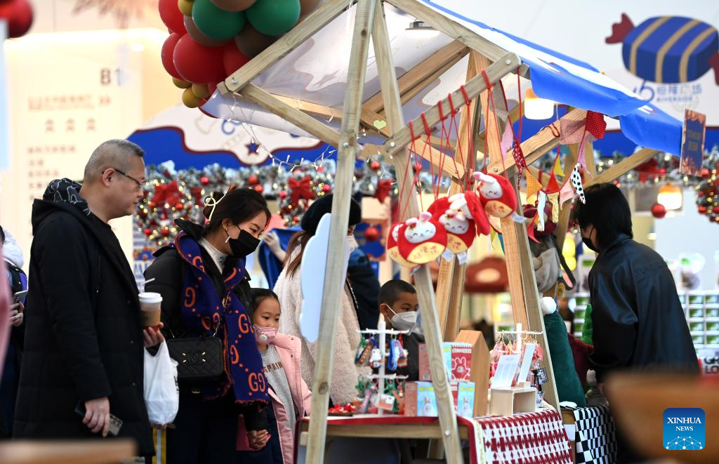 Customers shop at a shopping mall in north China's Tianjin, Dec. 31, 2022, the first day of the New Year holiday. (Xinhua/Zhao Zishuo)